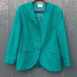 Vintage Pendleton emerald green virgin wool blazer. Has shoulder pads. Size tag says 18 but please see measurements. EUC