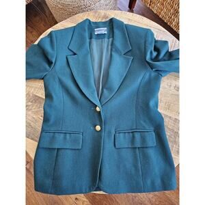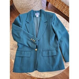 Beautiful stunning Blazer Size you 6p in very nice condition with no flaws. I take all photos in natural lighting and this was taken mid day. It looks Teal but it's green. Best photo to see color is the size tag photos. Please look for photos for details.