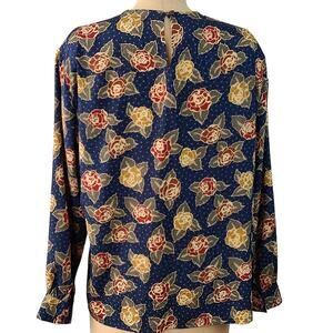 Vintage Pendleton navy maroon ochre floral long sleeve blouse 16
