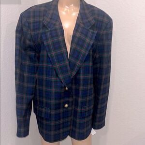 Vintage Pendleton Stylish wool plaid blazer featuring gold buttons. Perfect for a classic look. Pit to pit 26” flat, length 28”, sleeves 24.5”.