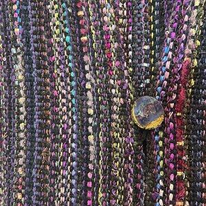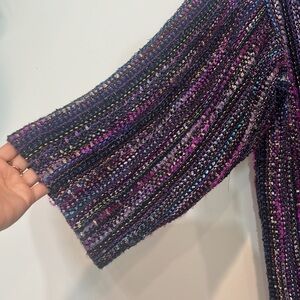 Theme art to wear hand weave metallic sequence sparkle purple 1199 union power vintage fold colorful royal regal women’s cardigan over coat summer night fair beach walk