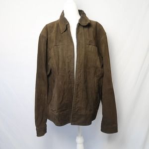 Vintage Penman's Men's olive green suede leather zip front bomber jacket L
