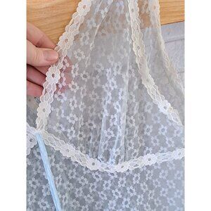Vintage Penneys Gaymode Sheer Blue Floral Lace Nightgown V-Neck Ivory Trim Med