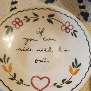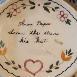 Hand crafted. Ceramic material. No glazing issues. The one plate "Throw Papa down...." Does have some imperfections from when it was made, as pictured.
