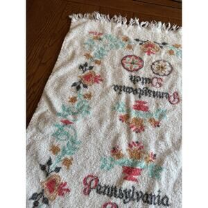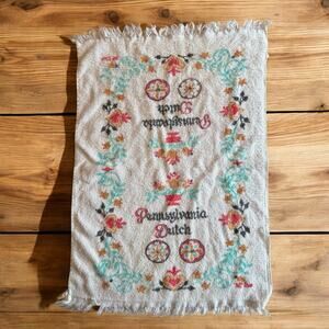 Vintage Pennsylvania Dutch Kitchen Towel Fringed Hex Art Floral 1980s Retro