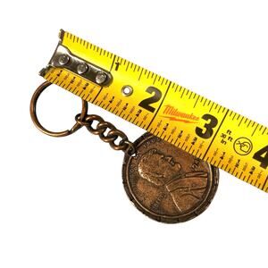 The keychain is in good vintage condition. There is patina on the penny, chain, and ring.