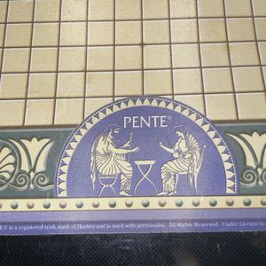 Get ready for hours of fun with this vintage Pente game deluxe edition, perfect for players of all ages and genders. This game board is made by Hasbro and comes with a padded roll travel tube for easy transport. The mat is from 2004 and is in excellent condition, making it the perfect addition to any board game collection.