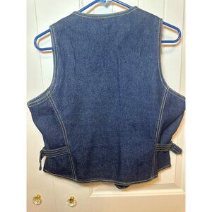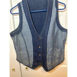 Vintage Pentimento Denim Vest With Snap Buttons & Yellow Stitch Dual Pockets, L