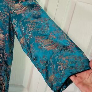 Vintage Peony Brand Shanghai China Robe Coat Size Med Satin Pankou Knot Button