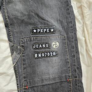 Vintage Pepe Jeans London Jeans Size 36x33 Gray Denim Camo Pocket Y2K Baggy Fit
