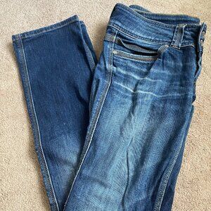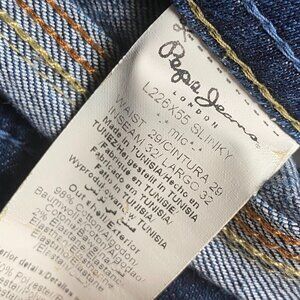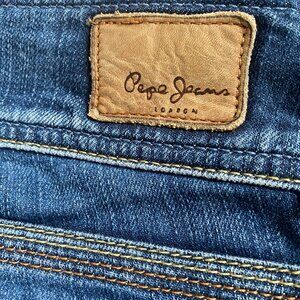Classic Pepe London denim in a versatile medium wash. Straight leg fit with a mid-rise waist, featuring subtle fading and signature Pepe branding on the back pocket. Durable cotton denim with a comfortable broken-in feel—perfect for everyday wear. See photos for details.