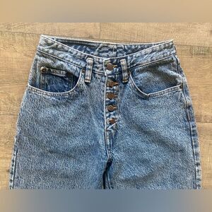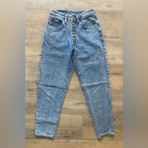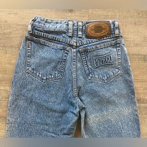 Vintage Pepe womens size 25 acid wash high rise straight denim button fly jeans, 100% cotton, made in Hong Kong, Pepe Co logo, 80’s-90’s