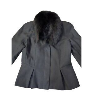 Vintage Peplum Jacket Womens S? Used Black Lined Fuzzy Collar
