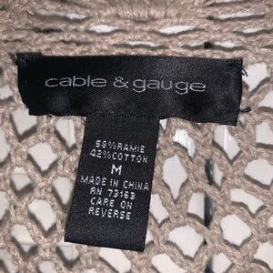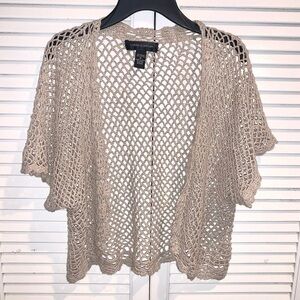 Small tan netting short sleeve sweater made by Cable and Gage size medium