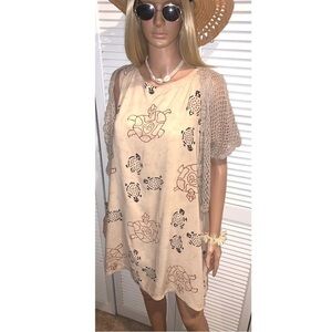 Vintage Peppermint Bay Turtle Rayon dress with net open coverup sweater Large