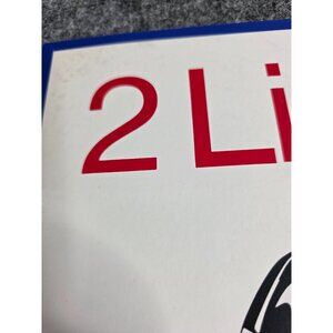 Minor discoloration near the "2 Liter" area and lower corners of the white background.