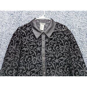 Vintage Perceptions Burnout Velvet Top Womens 18 Button Up Sheer Gothic Floral