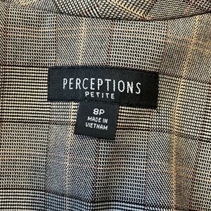 Vintage Perceptions Elegant Tank and Jacket/Blazer, Sz. 8P. This versatile jacket/blazer with tank with long sleeves has a classic lining that whispers quiet luxury. It blends classic style with modern trends, offering a seamless addition to your sophisticated wardrobe. Wearing them together or separate over the course of any day is like getting two items for the price of one and this classy and elegant piece has a lot more life left to do that for a long time. Good for workwear, a lunch or any other occasion. Great pre-owned condition that looks to hardly have been worn. An excellent addition to any closet.
