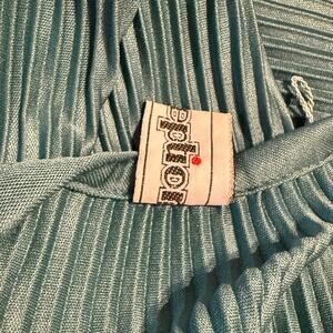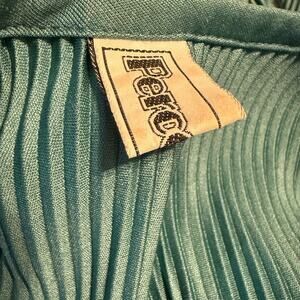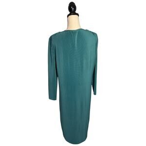 Vintage Perceptions Pleated V Neck Long Sleeve Shift Dress Women's Size XL Green