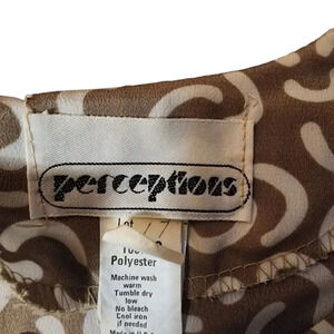 Perceptions Union Made Dress Women Size 7/8 Gray Geo Print Crew Neck Button Belt