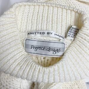 Vintage Perfect Designs sweater in women’s size small. Cable knit. Cream color 55% ramie 45% acrylic. Dry clean or hand wash. High neckline. Pearls and flowers. Knitted by hand. Excellent condition!