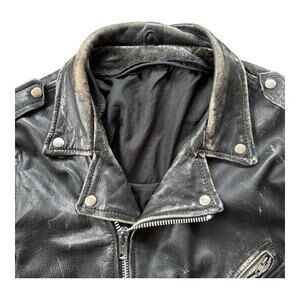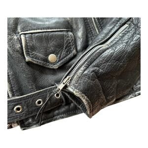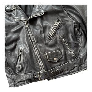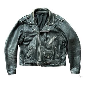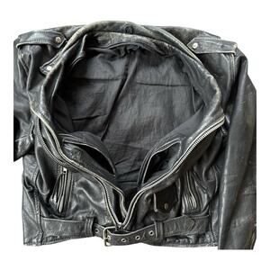 Vintage Perfectly Worn Black Leather Belted Motorcycle Jacket Men’s Large