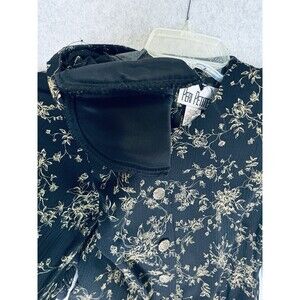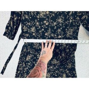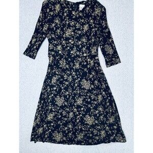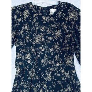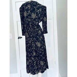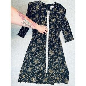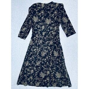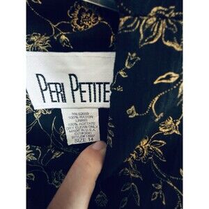 Vintage Peri Petites Black & Gold Floral Dress - Buttons - Size 14 - Retro Soft
