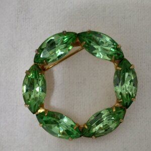 Vintage Peridot Green Rhinestone Circular Pin Brooch