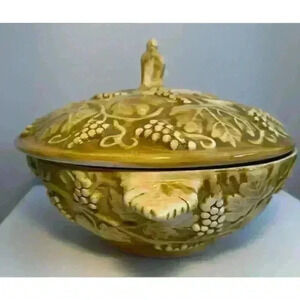 Vintage Perigrappa of Deruta Italy Round Covered Vegetable Serving Dish Yellow
