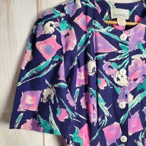 Vintage Periwinkle Dress Womens Size 10 Purple Floral Button Down Cottage Pinup
