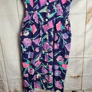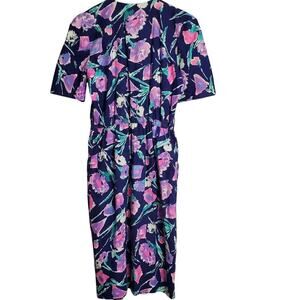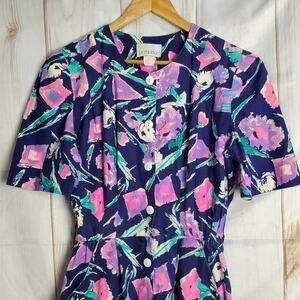 Vintage Periwinkle Dress Womens Size 10Purple Floral Button Down Cottage Pinup