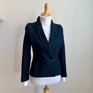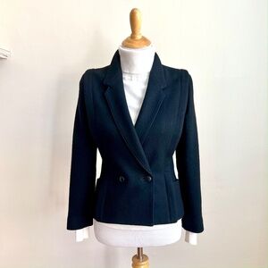 Vintage Perla Women's Black Wool Double Breasted Power Blazer Suit Jacket 7