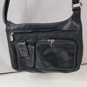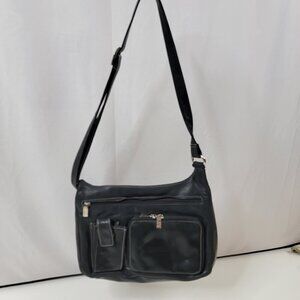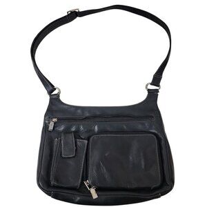Vintage Perlina Black Leather Crossbody Bag with Organizer Pockets