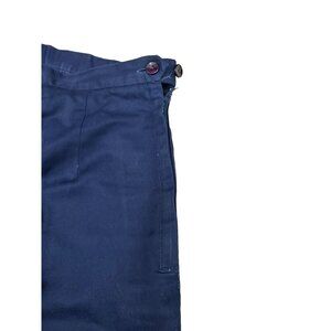 These vintage high-waisted side zip pants in navy blue are a must-have for any fashion-savvy woman. The pants feature a pleated front and straight leg style, with a comfortable fit and made from a durable polyester/cotton blend fabric. Single Side pocket for convenience. The pants come in a size 16 with a 29-inch waist size and 26" inseam leg.