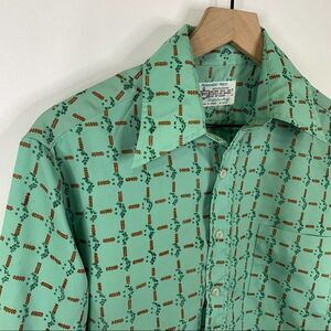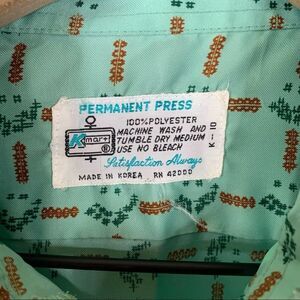 Very good used condition Vintage Permanent Press Polyester Kmart long sleeve button up Blouse. Faint stain on the sleeve (pictured). No size tag but should fit a modern day women’s large. Please see measurements provided to determine fit.