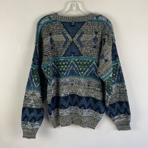 Vintage Permit Grandpa Tribal Native American Print Chunky Knit Sweater Medium