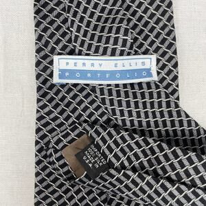 Vintage Perry Ellis 100% Silk Men's Necktie-Black/White Geo Print