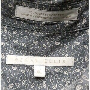Vintage Perry Ellis Button Up Shirt Men's XL Paisley Gray Long Sleeve