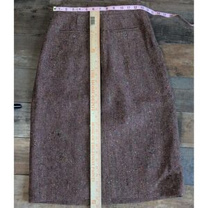 Discover timeless sophistication with this vintage Perry Ellis Portfolio pencil skirt! Imagine the soft, rich texture of 100% pure wool tweed, a classic fabric that instantly adds a touch of refined elegance to your wardrobe. This isn't just a skirt; it's a feeling of polished confidence, a piece that seamlessly blends professional style with a hint of retro charm. The speckled tan/brown hue and classic pencil silhouette make it a versatile staple that's perfect for the office, a business lunch, or a smart casual event. You'll find yourself reaching for this skirt to pair with a sleek blouse or a cozy knit sweater. It’s a quality piece that stands the test of time, promising both enduring style and comforting warmth. What confident steps will you take in this stunning skirt?