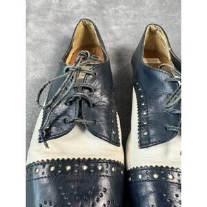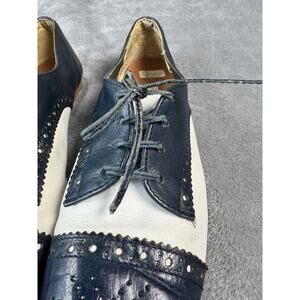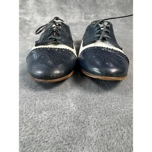 Vintage Perry Ellis Portfolio 7 AA Womans Monroe Oxford Flat Lace Navy White 80s