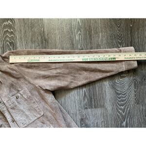 Vintage Perry Ellis Suede Leather Tan Brown Button Up Jacket Shirt Mens Large
