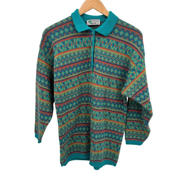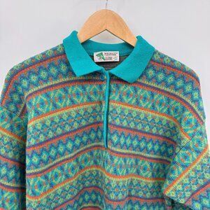 Vintage Personaggi Celebri Sweater Mens Medium Blue Wool Blend Collar