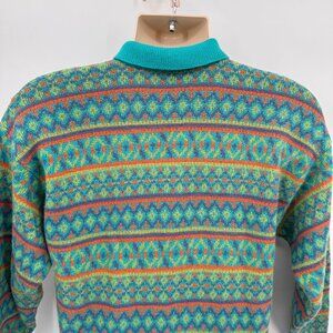 Dive into the kaleidoscope of fashion with this sweater that screams, "I belong in a museum of abstract art." It's like wearing a rainbow that exploded in an Italian yarn factory. An excellent choice for those who want to be the life of the party, or just the most colorful person in the room.