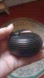 This is a small personal ashtray with a flip top lid. It's heavy and possibly brass under the brown paint. Sticker residue on the bottom.