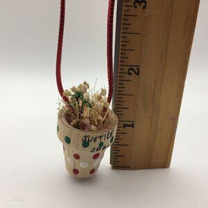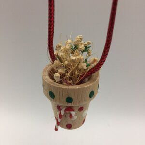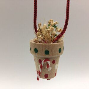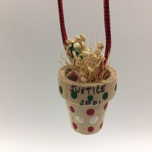 Vintage Personalized Christmas Tree Ornament Justice 2001 Wood Flower Pot 1" Red