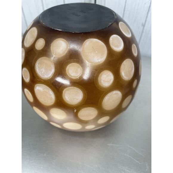 Vintage Peru Pottery Vase Pot Polka Dot Brown Art Deco Handmade