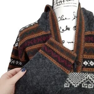 Vintage Peruvian Alpaca Sweater Hooded Pullover Aztec Gray Tribal Nordic