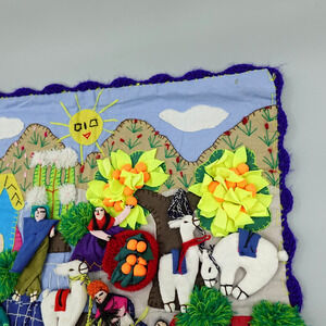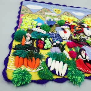 Vintage Peruvian Arpillera Wall Art 3D Textile Tapestry Handmade Pueblo Village