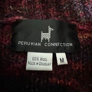 Vintage Peruvian Connection Hand Knit Rainbow 100% Wool Turtleneck Sweater Sz M