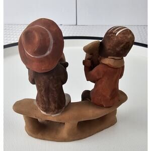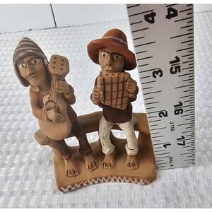 Vintage Peruvian Handmade Clay Figurine Guitar and Flute Players